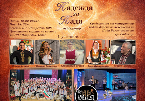 На 19 февруари 2026 г. град Радомир ще се превърне в сцена на съпричастност, човечност и надежда. В залата на Народно читалище „Напредък–1895“ ще се състои благотворителен концерт под надслов „Надежда за Надя от Радомир“ – инициатива, която събира музиканти, изпълнители и граждани в подкрепа на млада жена, водеща тежка битка за живот.